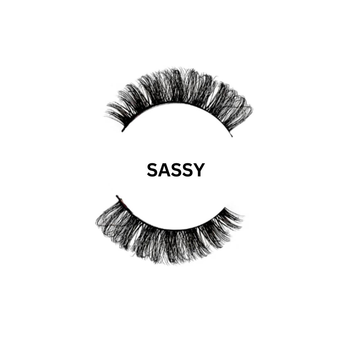Our false lashes include one pair of easy-to-apply, volumizing, and lengthening lashes. These full strip, hybrid lash giving the illusion of volume, hybrid lash extensions. The lashes a super curly and are great lashes for people who wear glasses, they are comfortable to wear, and instantly enhance your favourite makeup looks with their fluttery, unique shapes and styles. The SASSY lash is designed to enhance the eyes giving the perfect glam makeup finish. Carefully remove eyelashes from tray, you can keep the tray and box to protect the lashes from dust/dirt when they are off. Apply lash glue to the band and wait a 10 seconds for the glue to get tacky, or if you haven't already tried our Line & Lash Adhesive pens you can apply the pens to the eye lid and the lashes will stick within 2-3 seconds. Place lashes as close to your natural lashes as possible. Glue is not included.